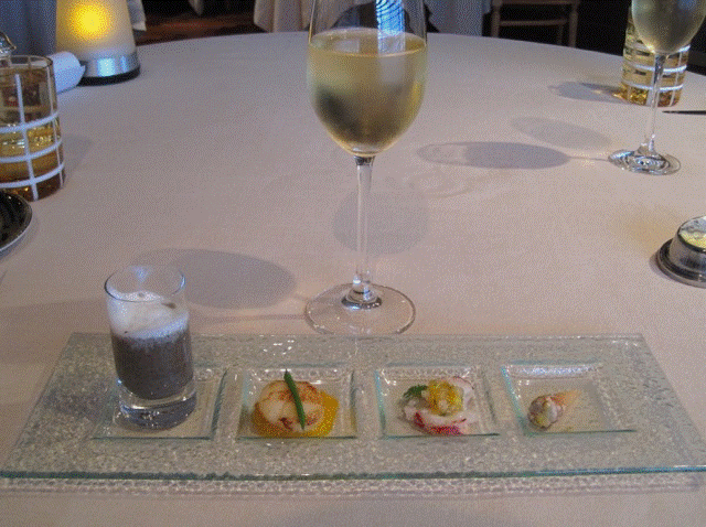 A QUARTET OF HORS D’OEUVRES IN LE CHAMPAGNE RESTAURANT |